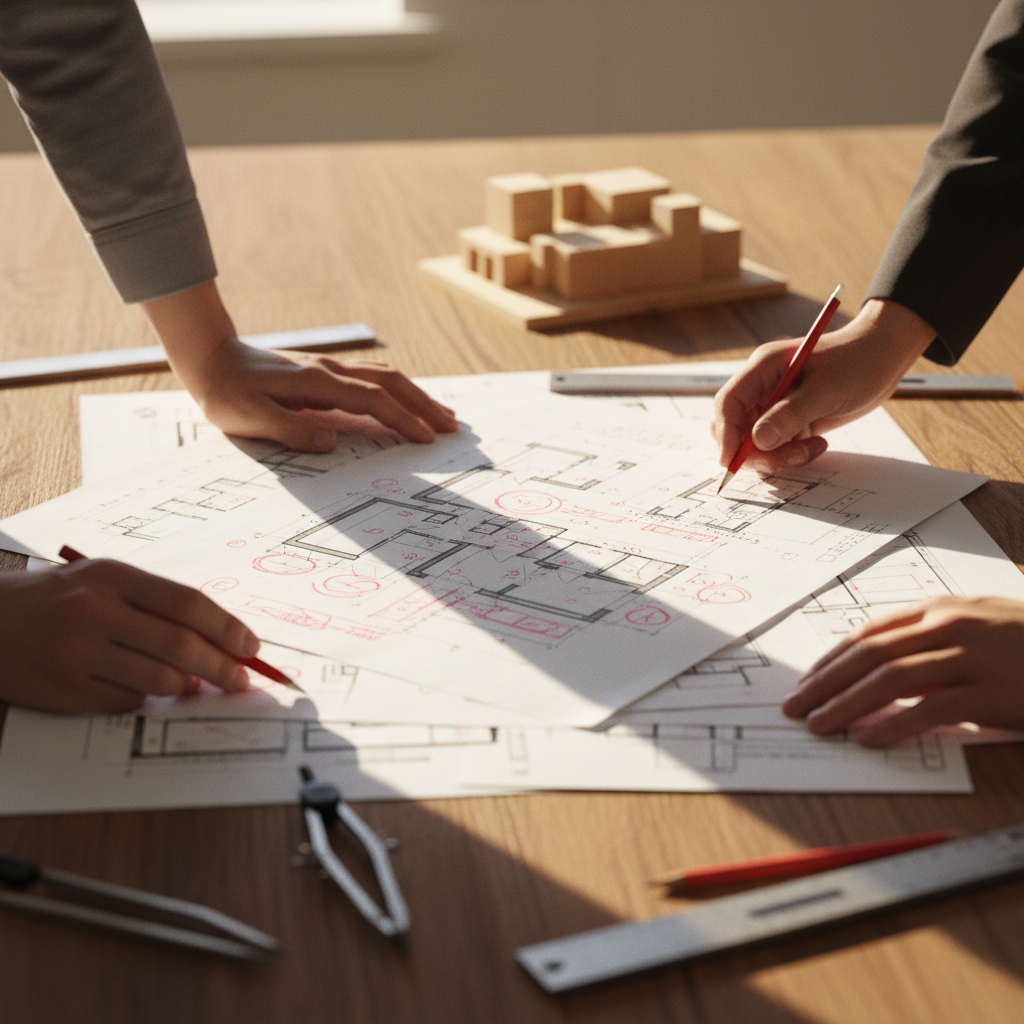 Design development refines the approved concept into detailed architectural solutions. It includes spatial coordination, material selection, and integration of structural and building systems. This stage ensures the design is technically sound, coordinated, and ready for documentation.